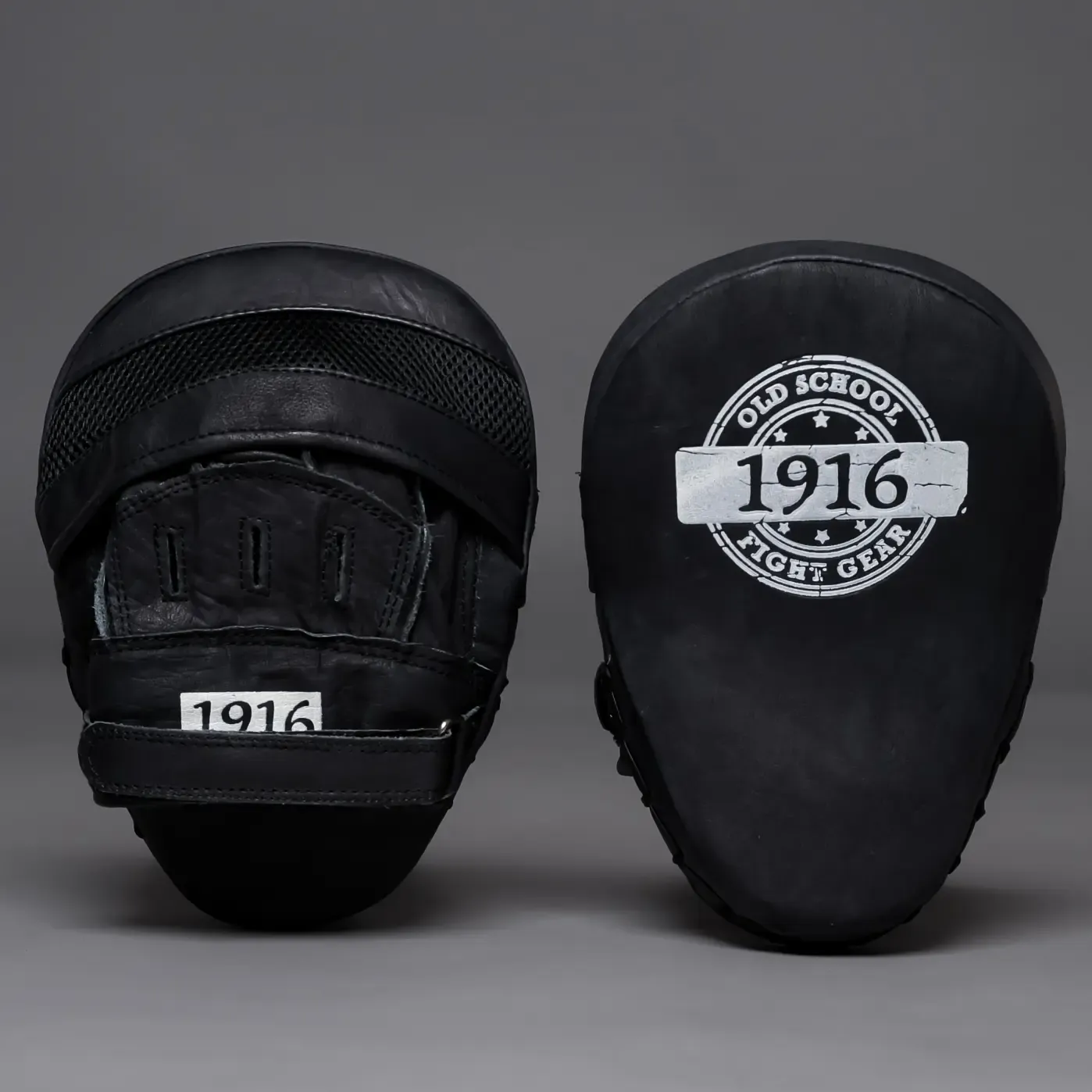 1916 Fight Gear Coaching Mitts Pads Leather Black/White