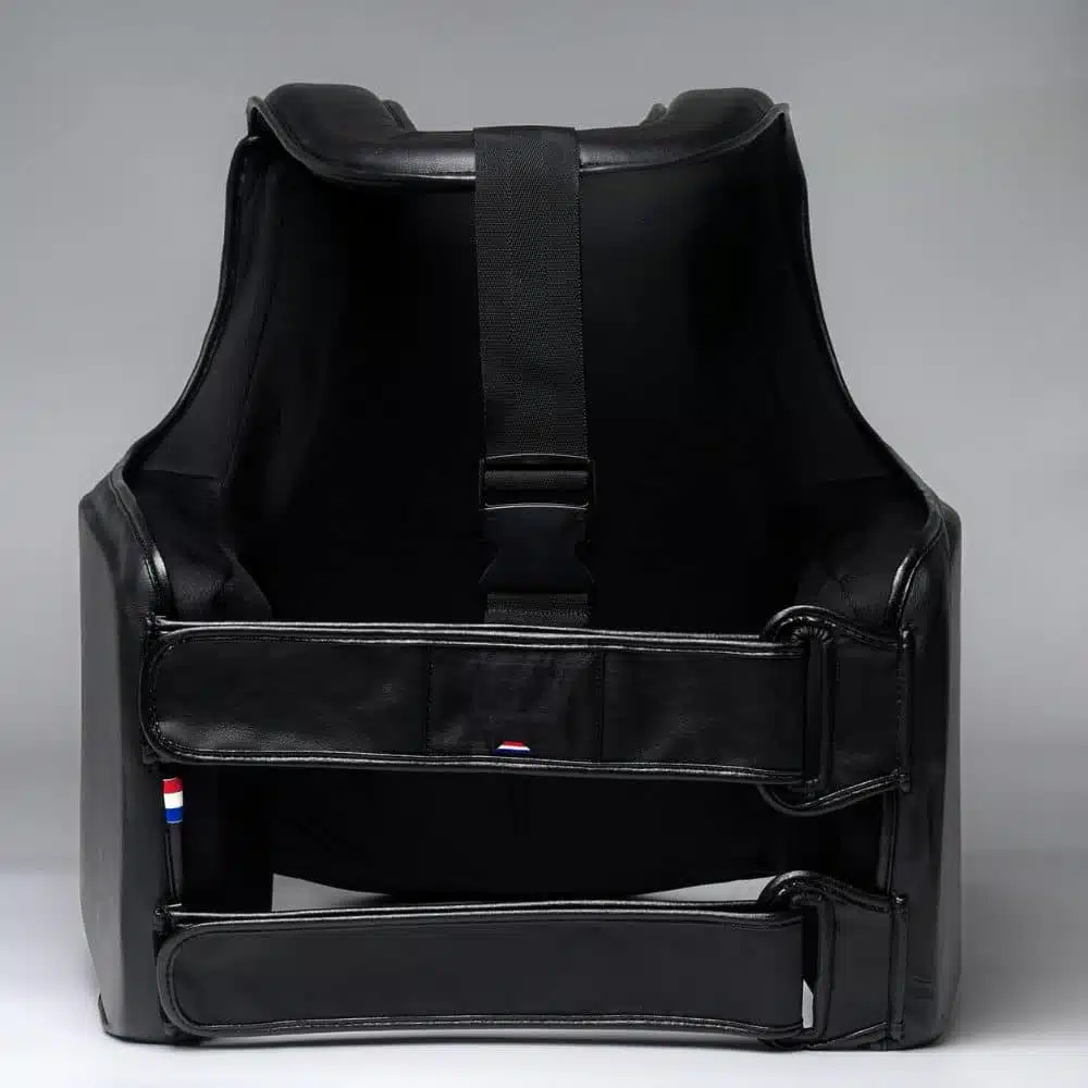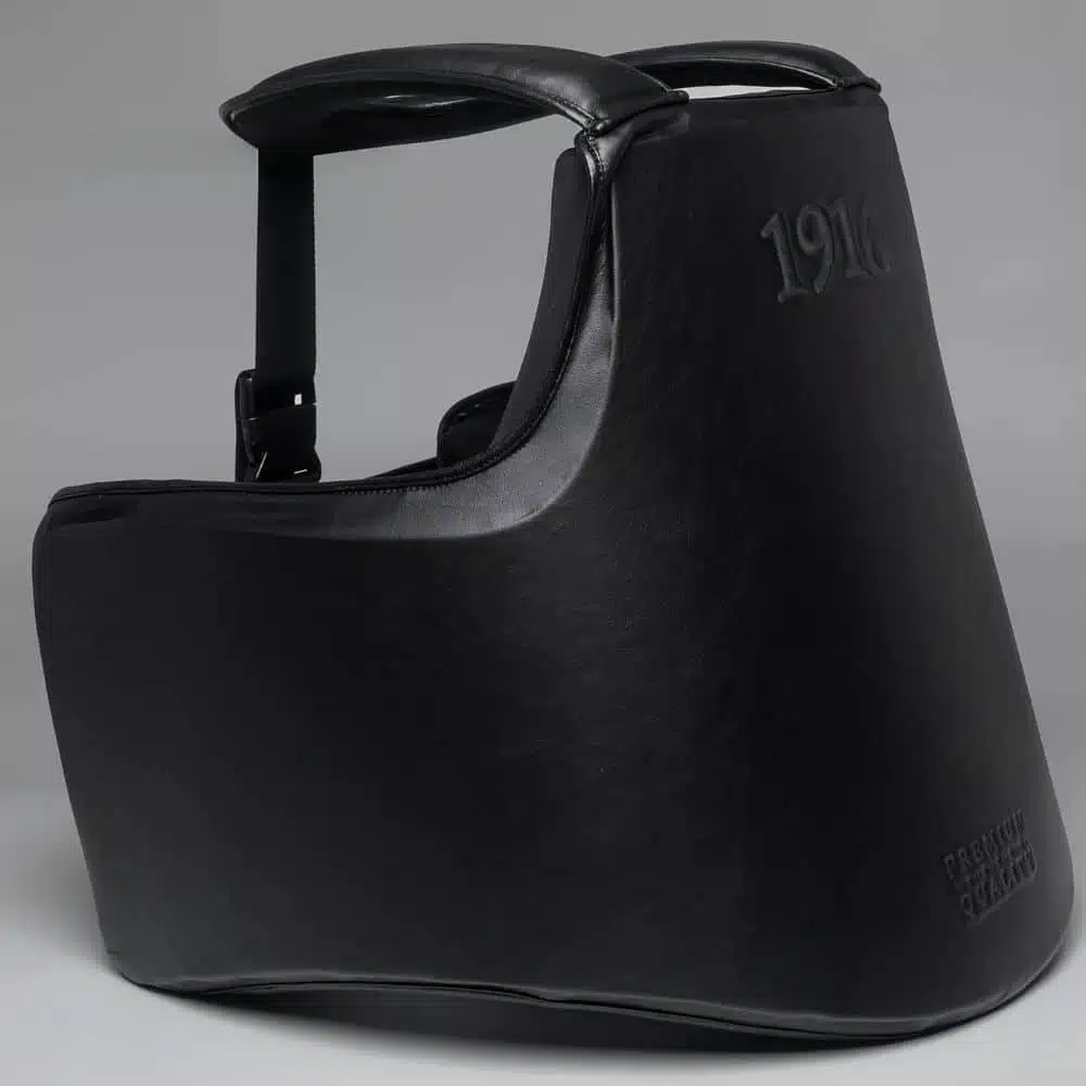 De 1916 Fight Gear Premium Elite Body Protector Black is ontworpen voor trainers en vechters die alleen genoegen nemen met het allerbeste. Deze hoogwaardige body protector is volledig vervaardigd uit premium leer en biedt een professionele uitstraling gecombineerd met maximale bescherming.