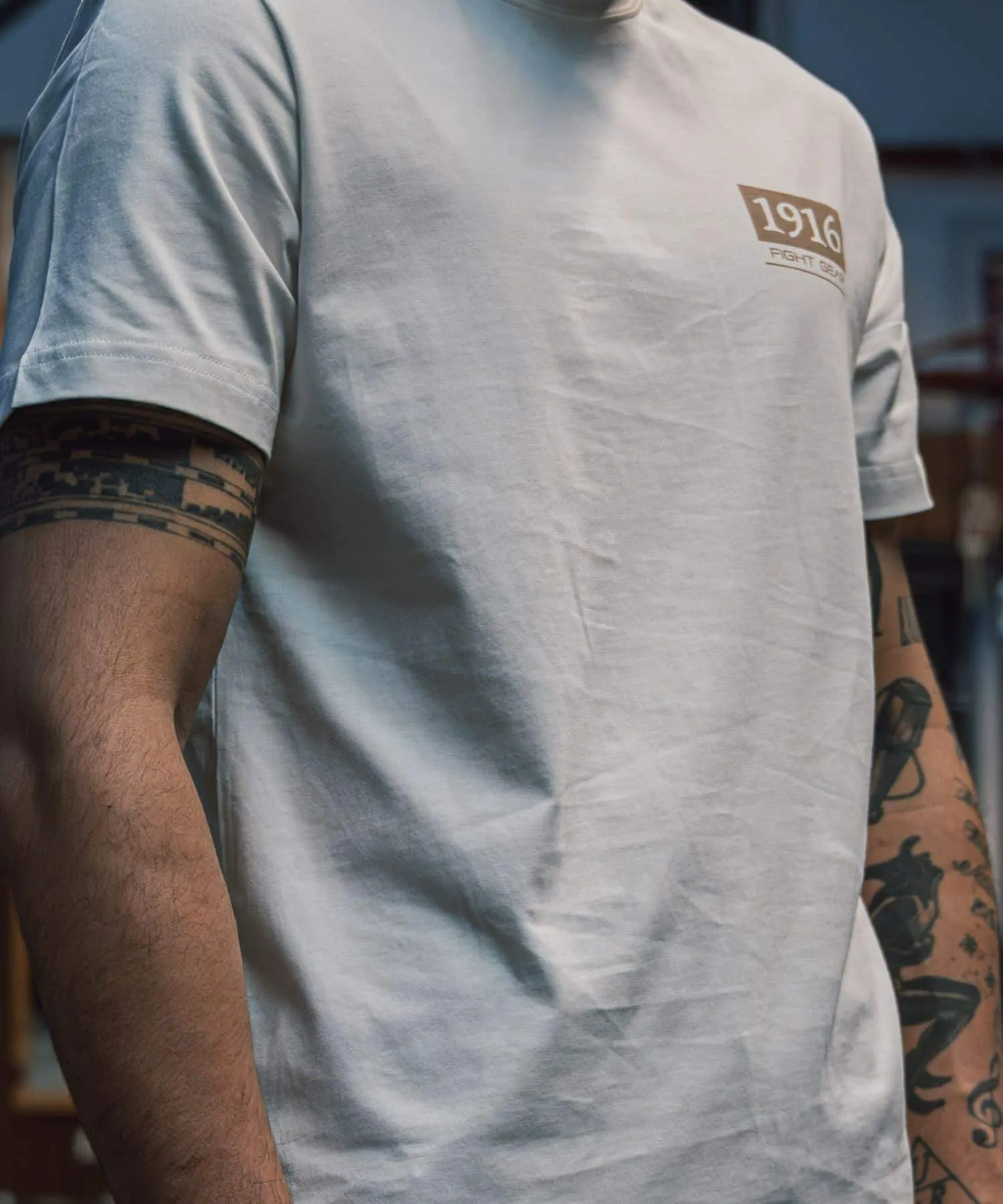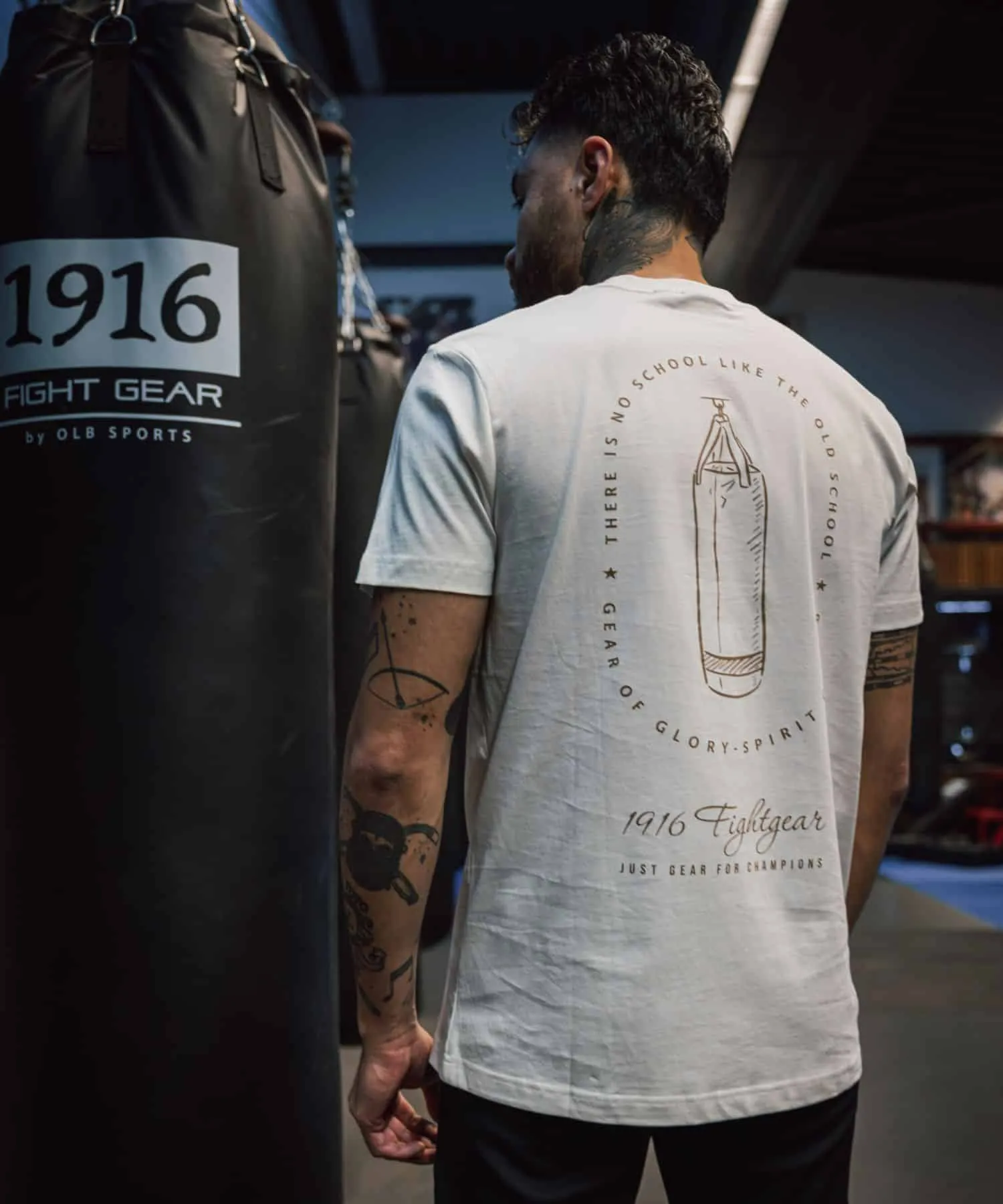 Stap in de ring van stijl met het 1916 Fight Gear Boxing Bag T-shirt. Dit shirt is ontworpen voor liefhebbers van de oude stempel, en dat zie je meteen aan de achterkant: een iconische bokszak-illustratie met daar omheen de woorden “There is no school like the old school”. Precies zoals het hoort.