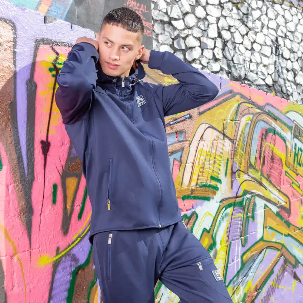 Het zachte maar duurzame anti-pilling weefsel van de trainingspak zorgt voor een gladde glans die perfect wordt aangevuld met onze rubber logo patch. Zijzakken met ritssluiting helpen je de dag door te komen, terwijl subtiele zilverkleurige metalen details zorgen voor een ingetogen maar toch opvallende look.