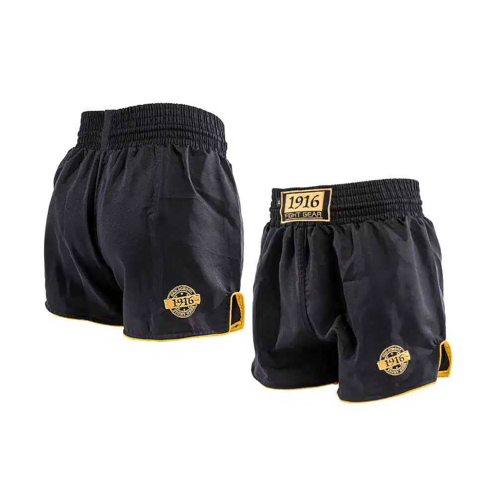 Standaard kickboksbroek met gave 1916 old school logo. De kickboksbroek heeft een brede band bij de taille, zodat de kickboks broek goed blijft zitten tijdens je training. Leverbaar in verschillende kleuren.