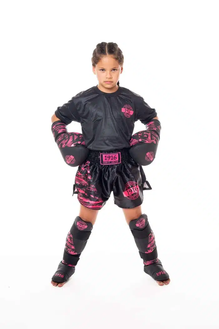 Combineer het 1916 Fight Gear Kickboksbroekje Youth Fighter met de bijpassende scheenbeschermers, bokshandschoenen en shirt uit dezelfde “Youth Fighters”-lijn, en uw kind is klaar voor een complete en stijlvolle vechtsportuitrusting. Het dragen van het 1916 Fight Gear Kickboksbroekje zal uw jonge vechtsporter niet alleen het gevoel geven een ware kampioen te zijn, maar zal ook het zelfvertrouwen en de passie voor de vechtsport versterken.