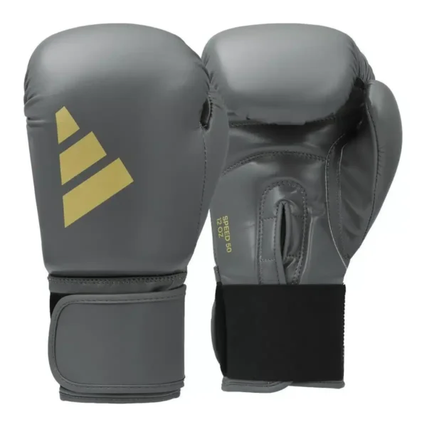 De Adidas Speed 50 is het ideale instapmodel uit de bekende Speed serie. Deze bokshandschoenen zijn vervaardigd van duurzaam kunstleder en bieden een optimale demping tijdens het stoten. Door de opvallende kleurencombinatie van grijs en goud ga je niet alleen veilig, maar ook stijlvol de ring in.