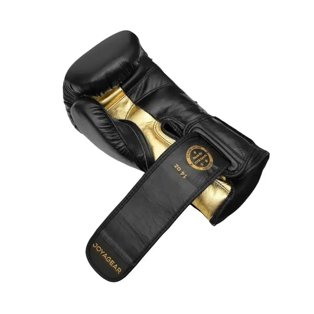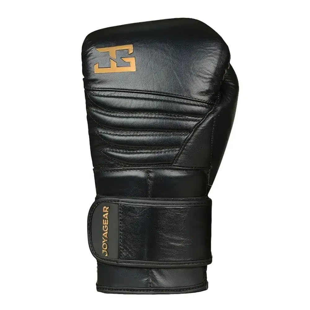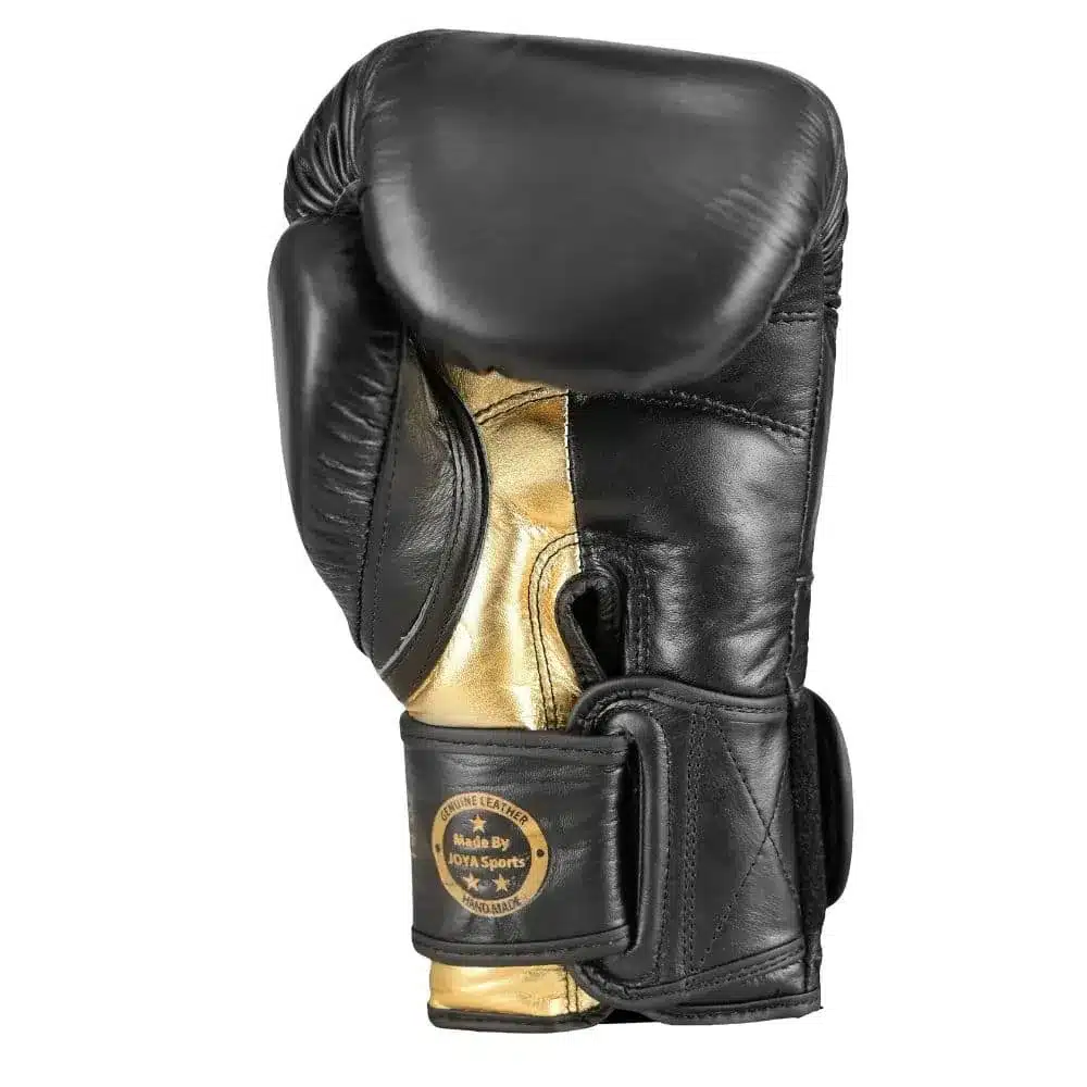 Gave bokshandschoen van Joya Fight Gear met dubbele klittenbandsluiting voor extra stevigheid rondom de pols. Prachtig afgewerkt met meerdere details: bovenop de handen zijn de vleugels van Joya in het leer verwerkt en om de handschoen heen een strook met koolstofvezeleffect. De handschoen heeft een vaste suède leren duim.