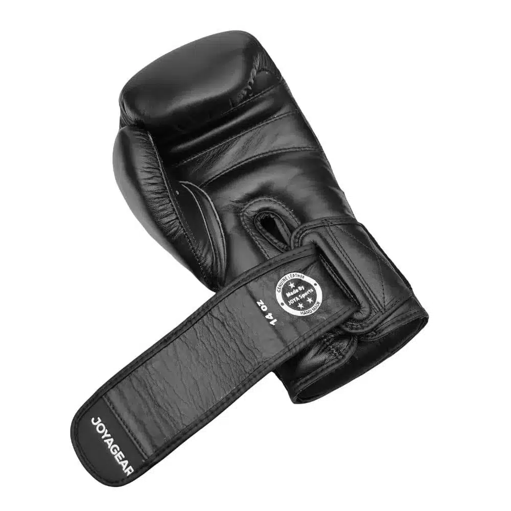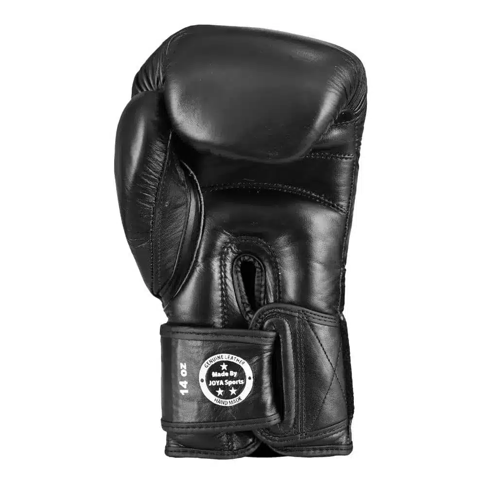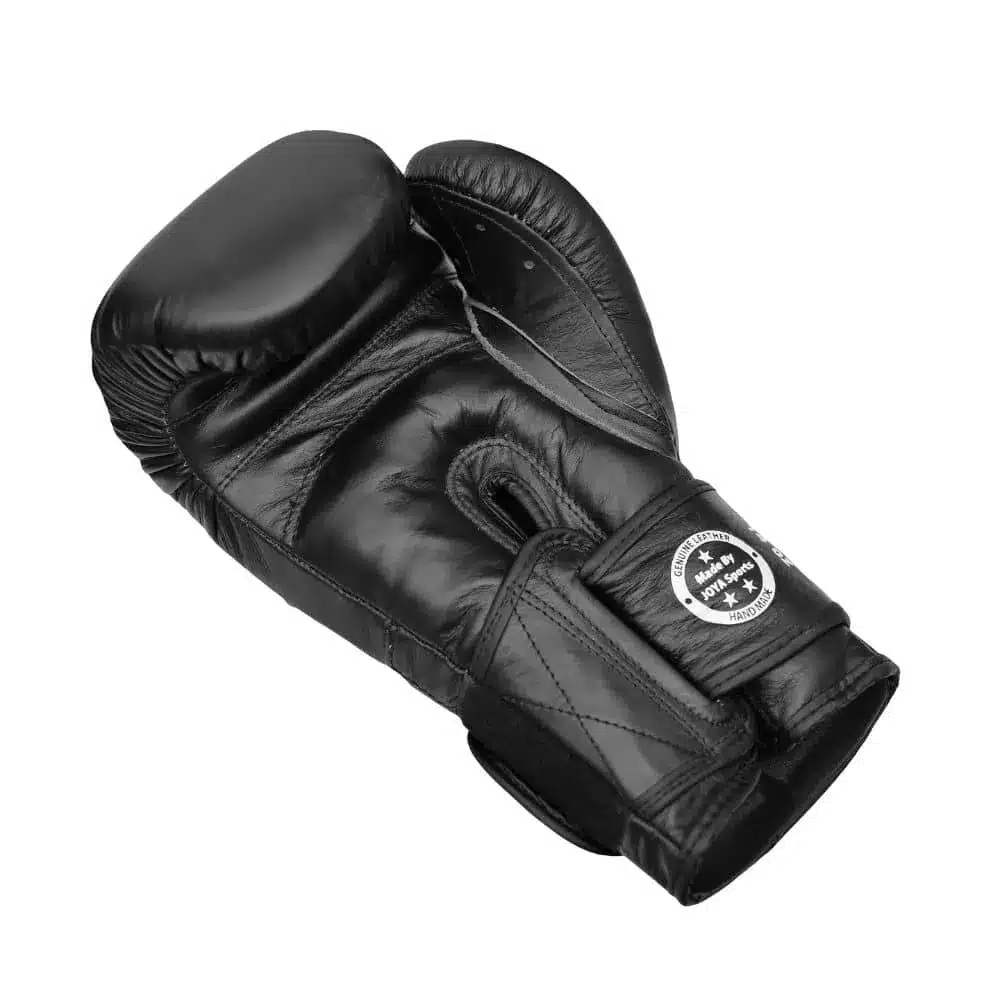 Gave kickbokshandschoen van Joya Fight Gear met dubbele klittenbandsluiting voor extra stevigheid rondom de pols.