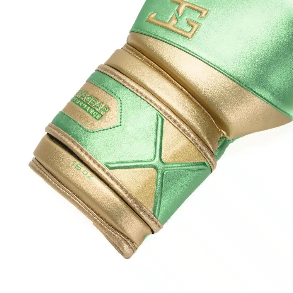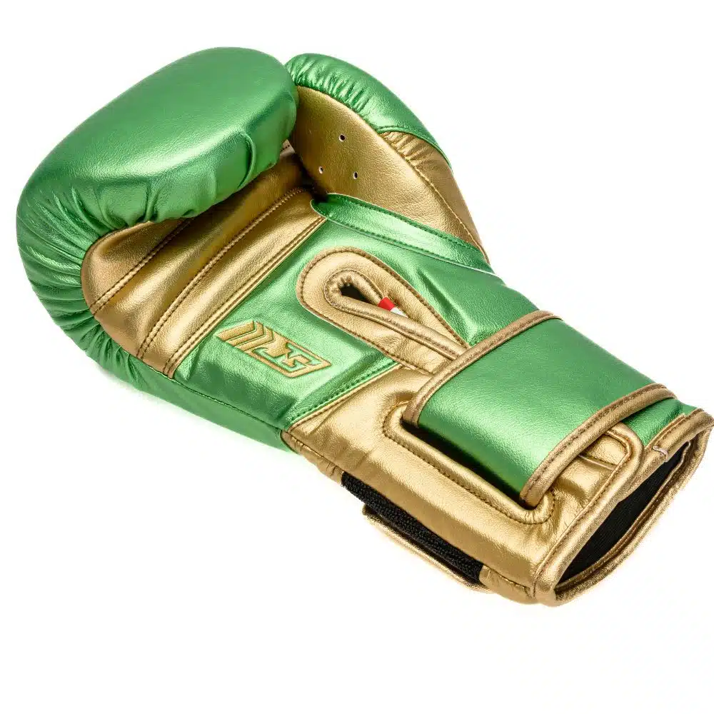 Voor extra gemak en veiligheid is de sluiting voorzien van een geïntegreerd Hook & Loop-systeem, dat zorgt voor een stevige en comfortabele pasvorm. Deze handschoenen zijn ook ontworpen met flexibiliteit voor clinchen, waardoor je vrij kunt bewegen tijdens sparren en clinchwerk. Het groene ontwerp met goudkleurige reliëflogo’s en premium afwerking geeft de handschoenen een stijlvolle uitstraling die vakmanschap weerspiegelt.