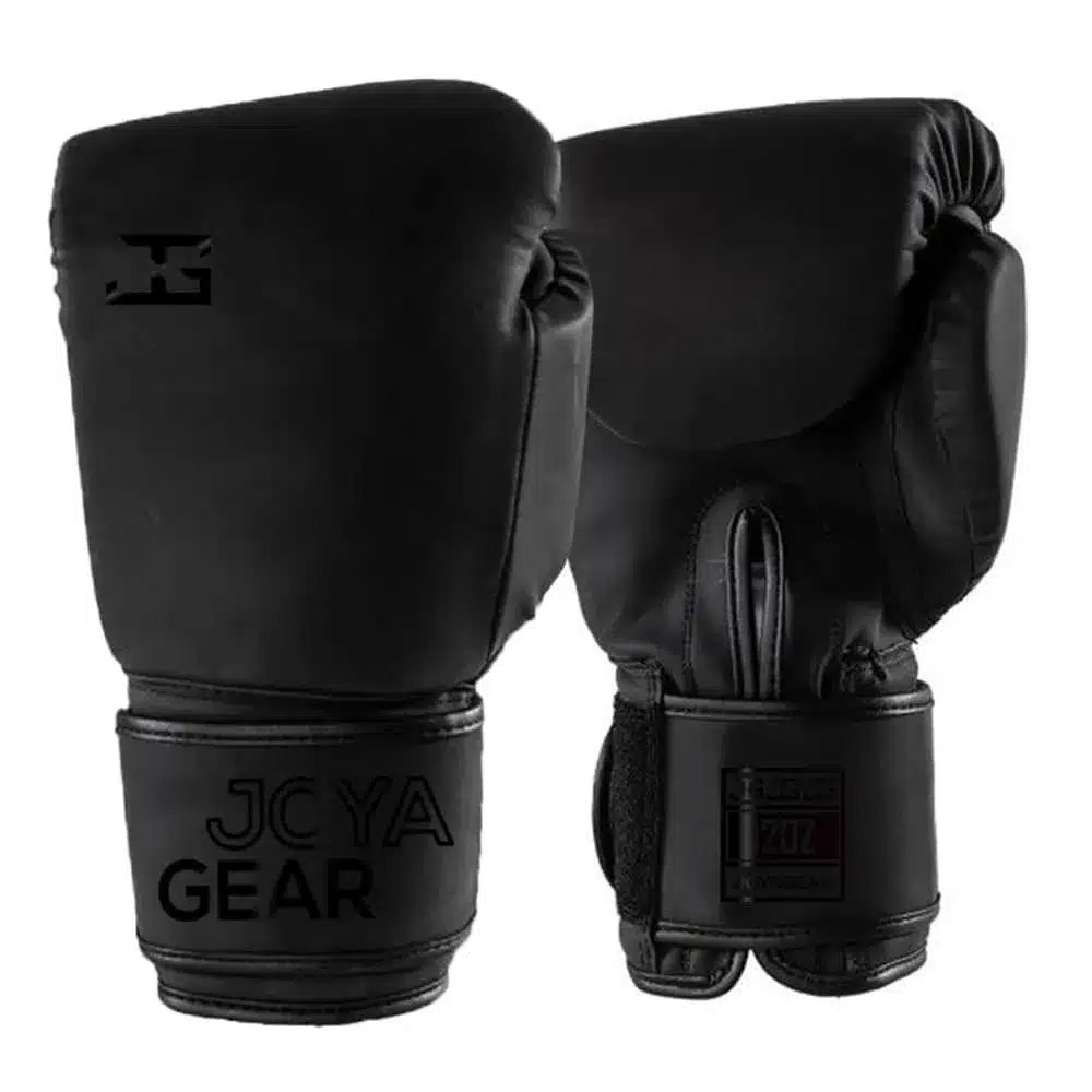 Joya max bokshandschoenen, synthetisch leren bokshandschoen met zwart-Metallic opdruk.