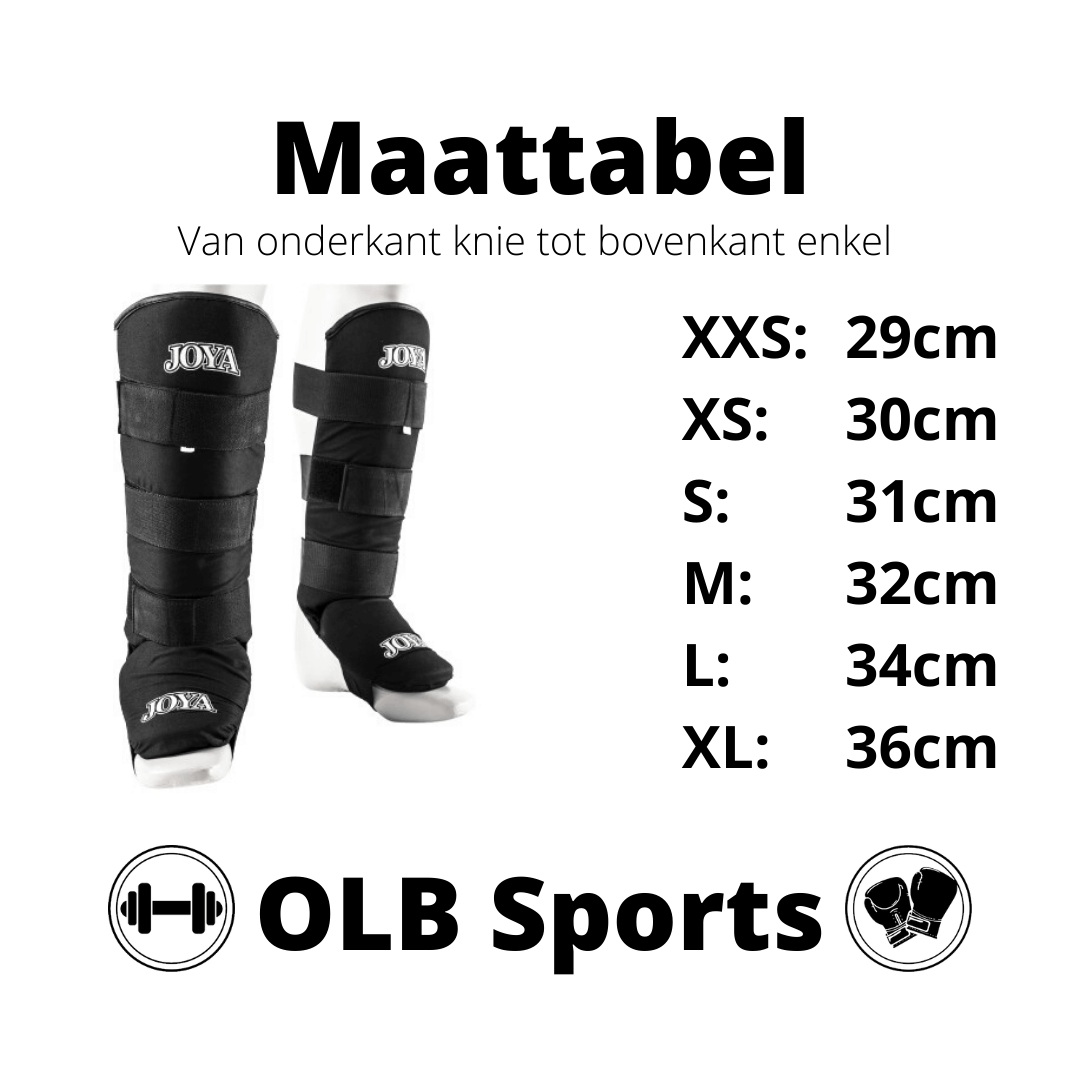 Een van de meest populaire producten van Joya, scheenbeschermer van katoen met rekbare klittenband sluiting.