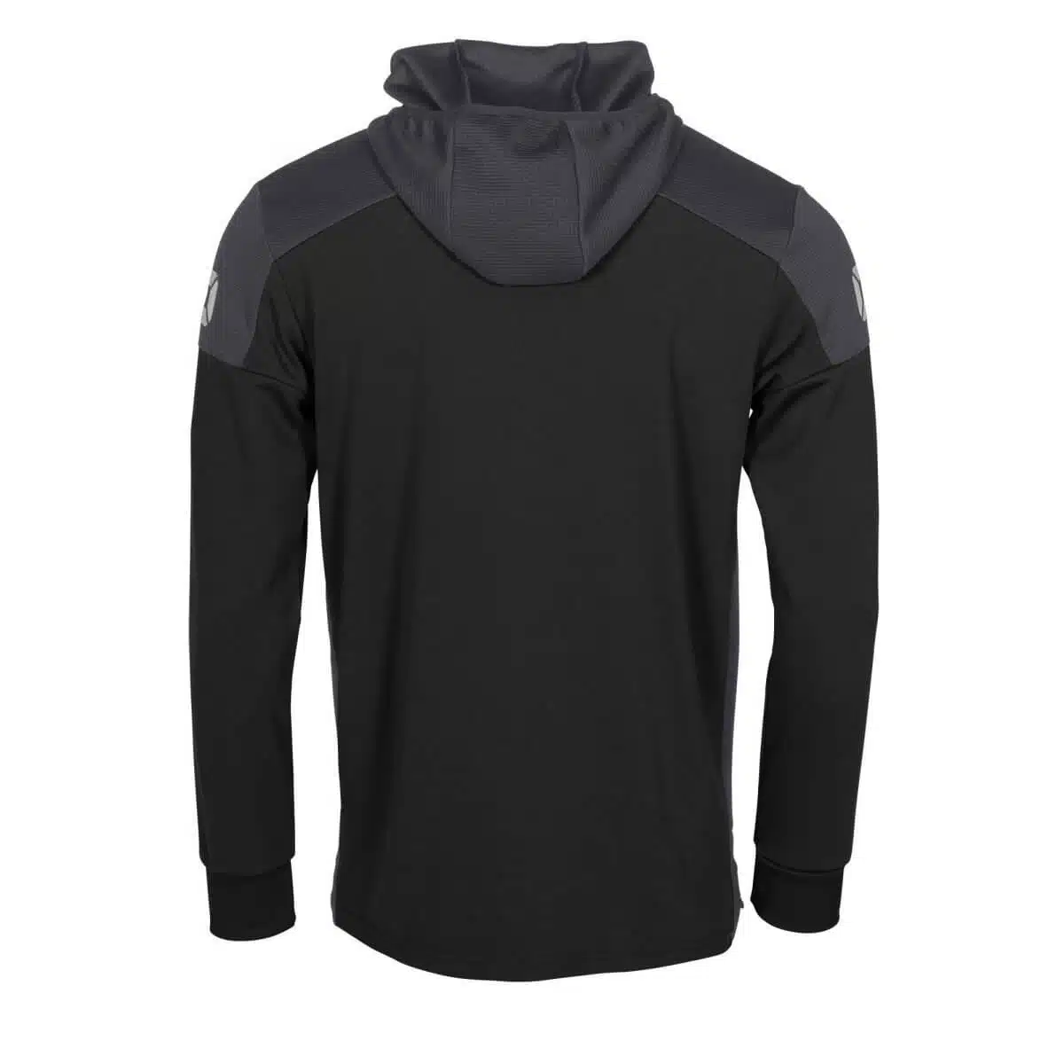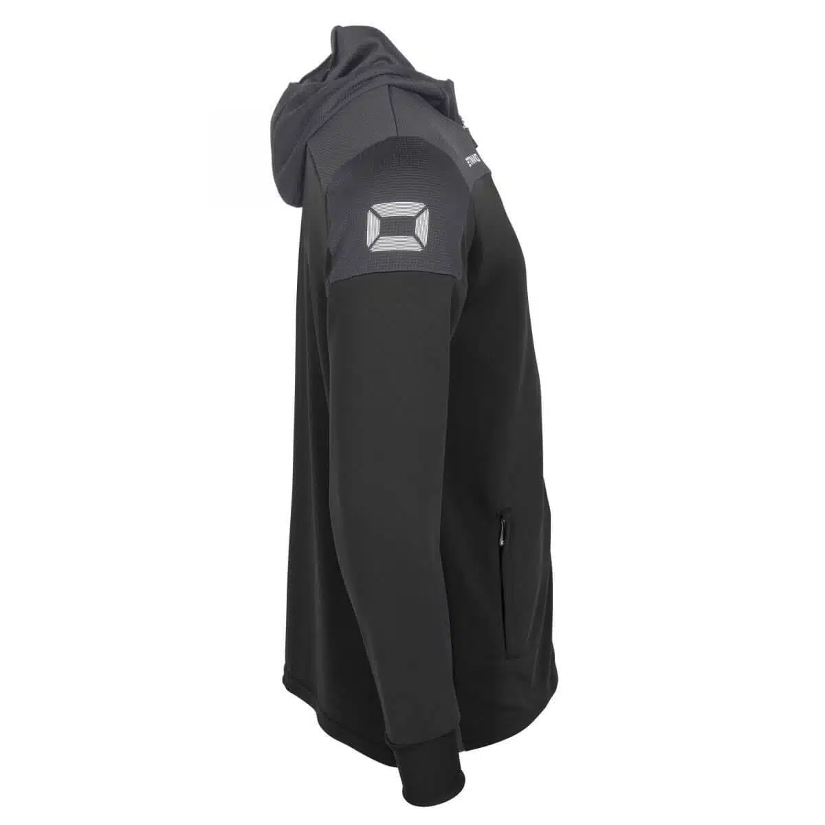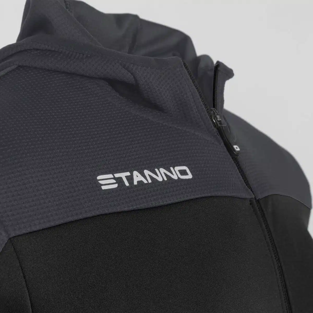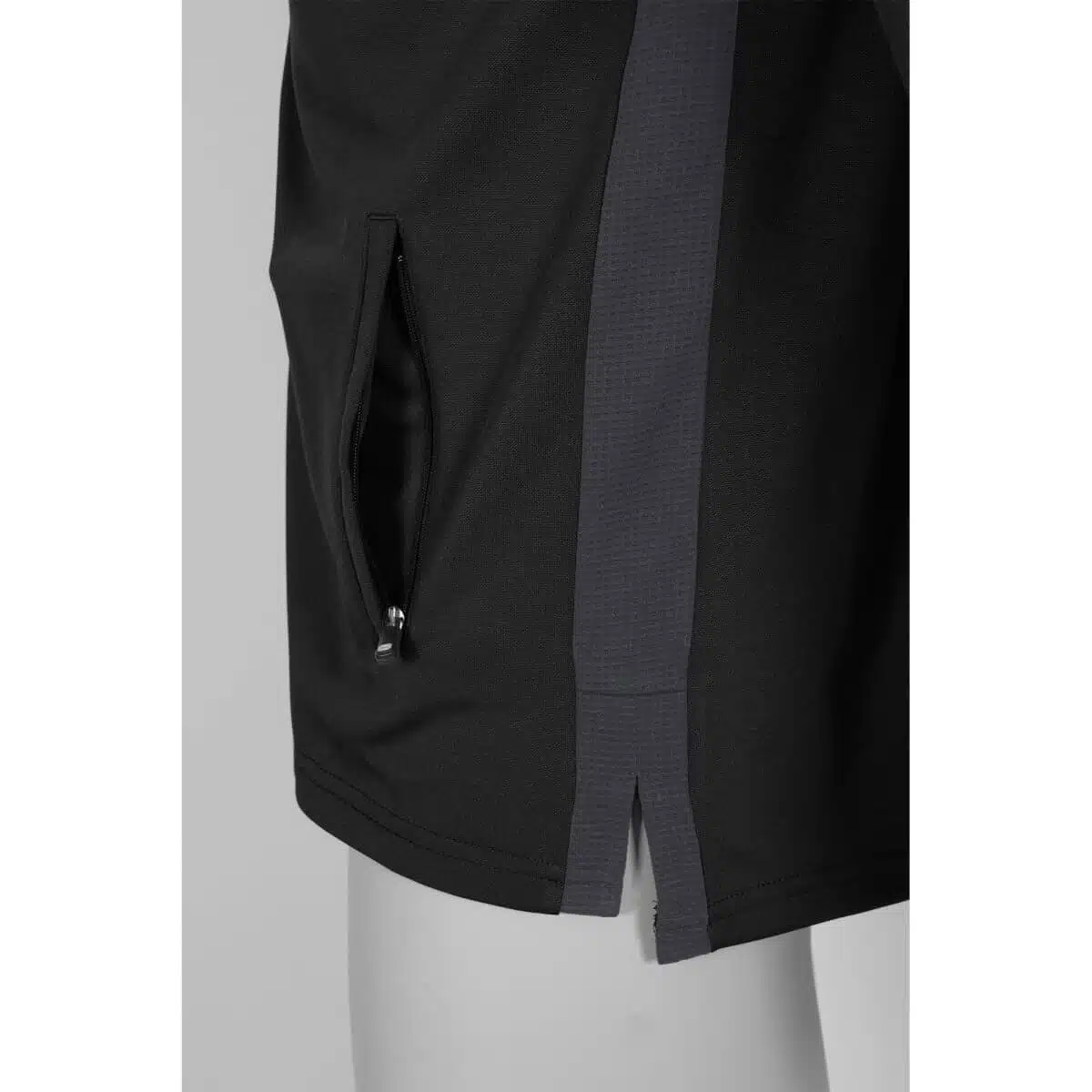 De Stanno Pride Full Zip Hooded Jack Zwart/Grijs heeft twee steekzakken aan de voorkant en een aansluitend machetten van elastisch materiaal. De bovenkant en de zijkanten van het jack zijn gemaakt van ventilerend mesh dat licht en luchtig aanvoelt. De taille van het vest is ook van elastisch materiaal en zorgt hiervoor voor een perfect-fit.