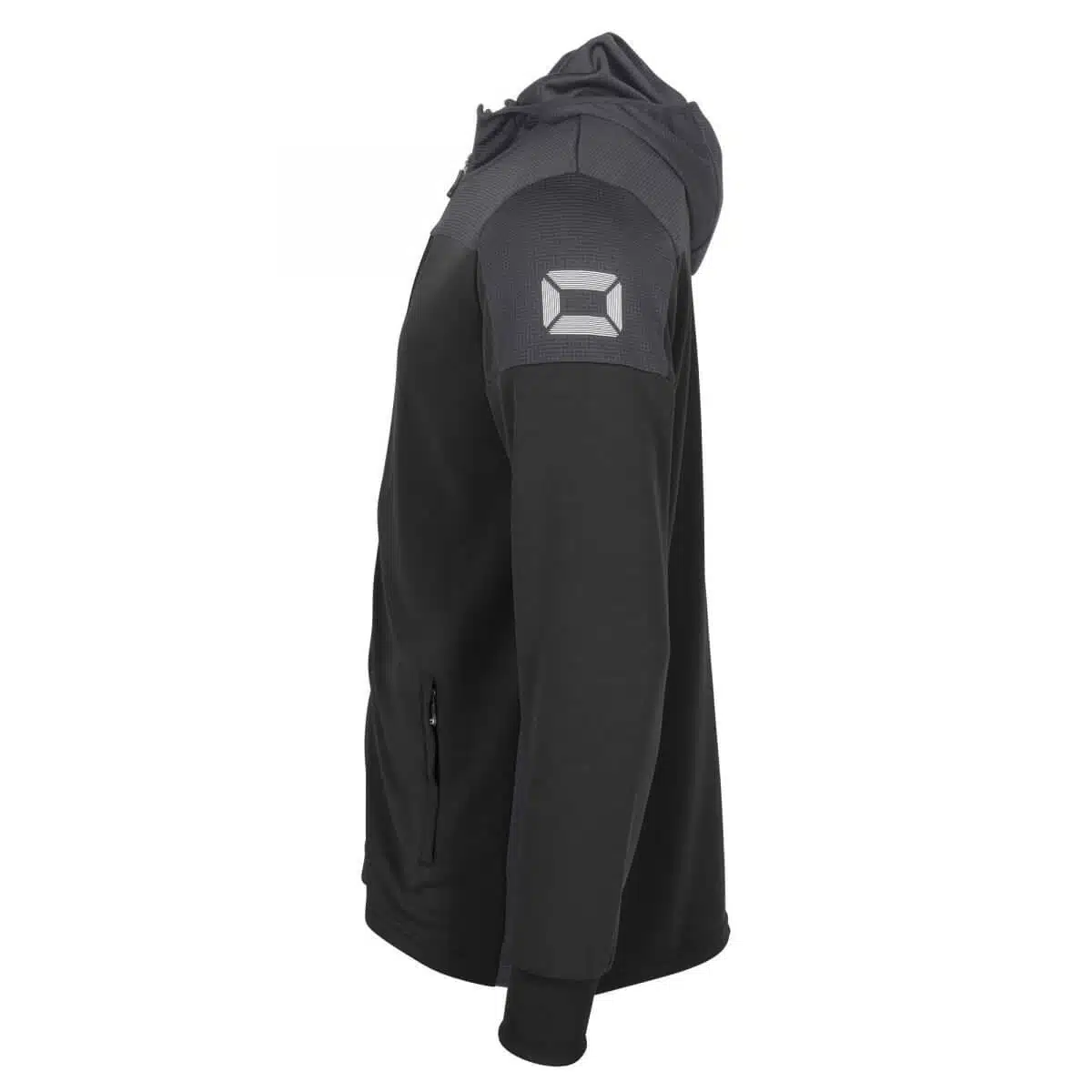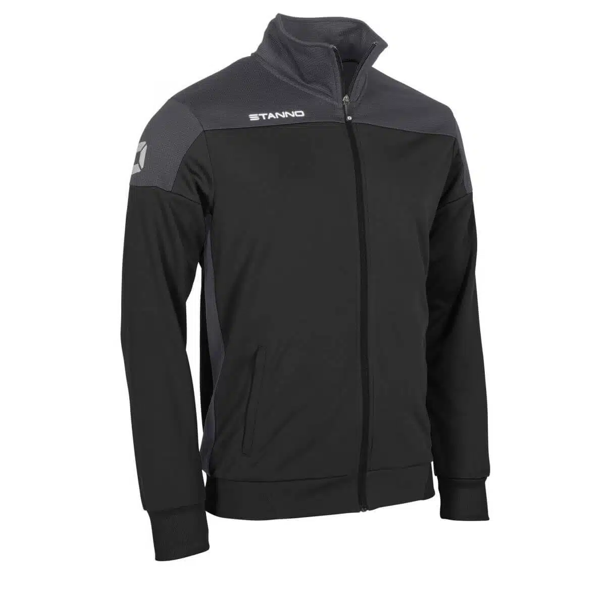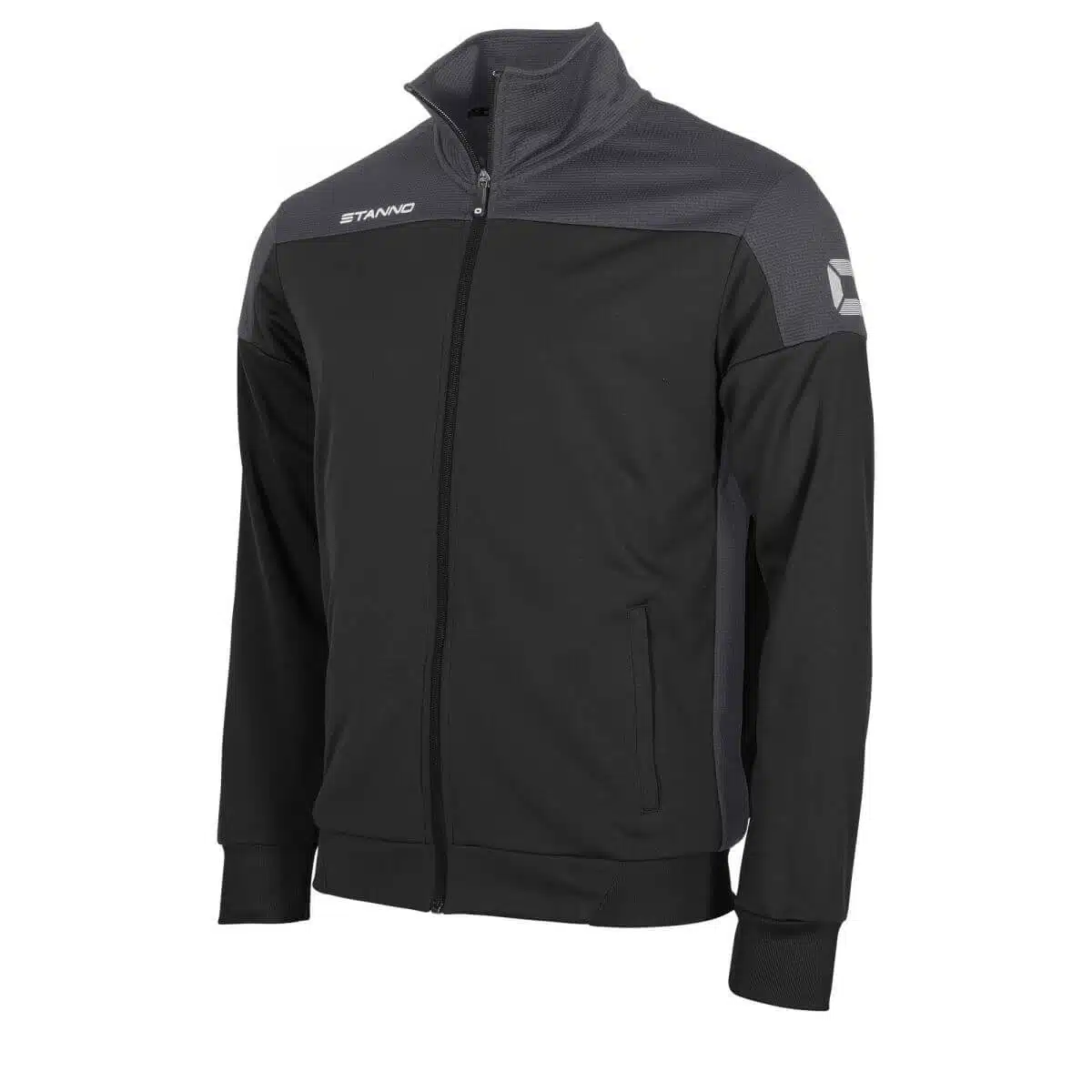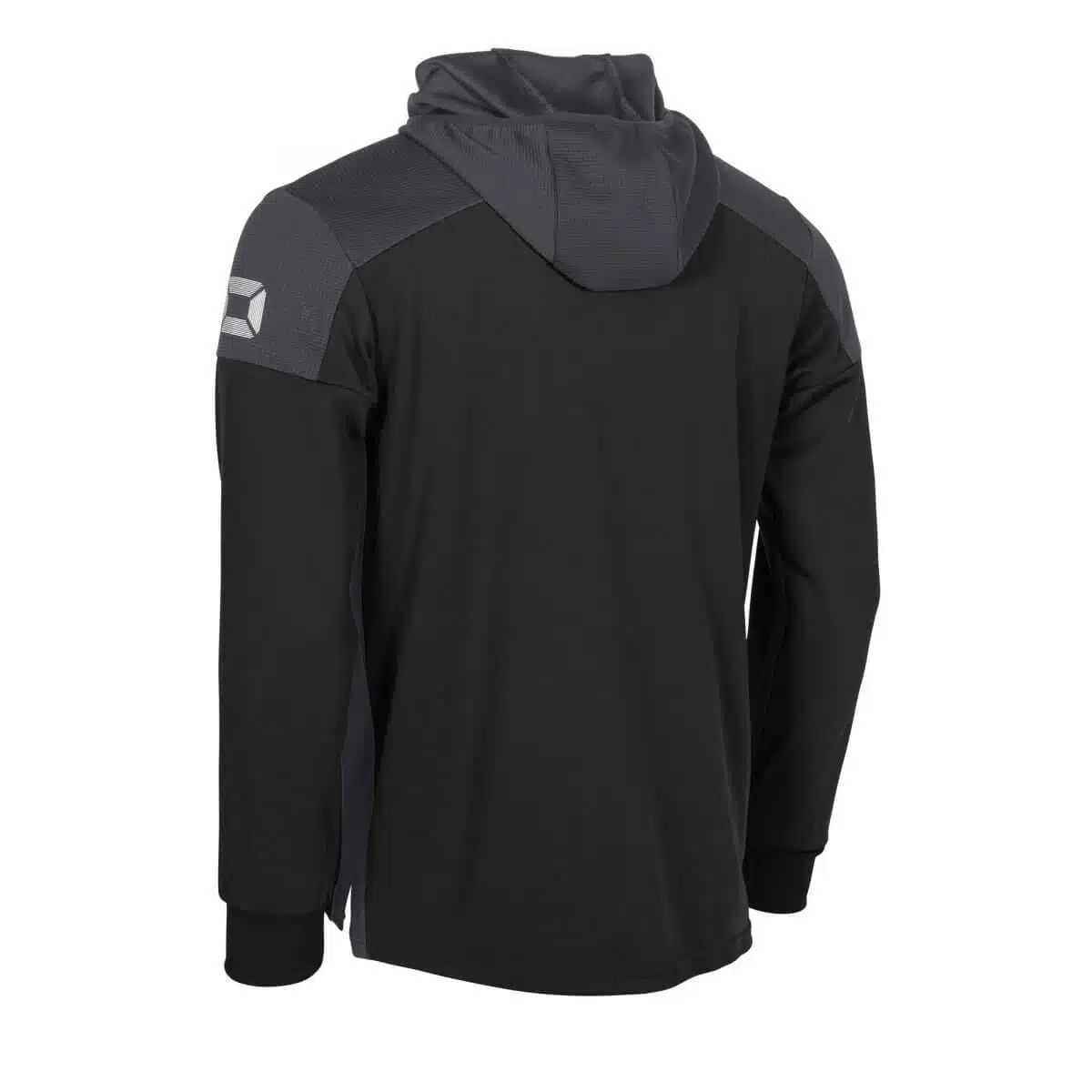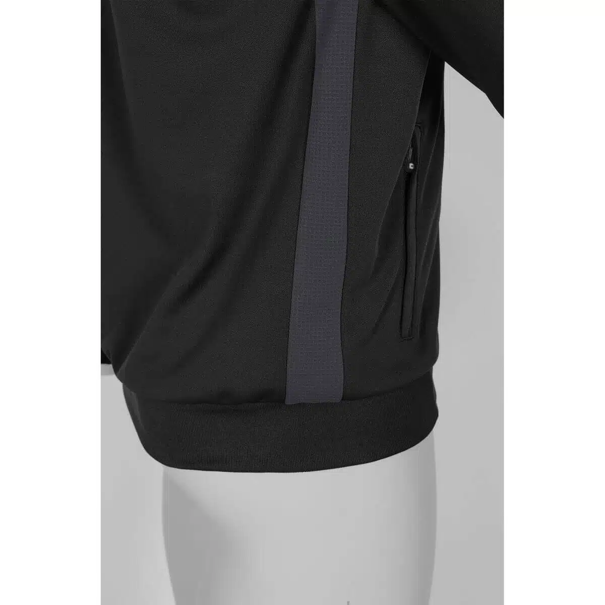De Stanno Pride Full Zip Hooded Jack Zwart/Grijs heeft twee steekzakken aan de voorkant en een aansluitend machetten van elastisch materiaal. De bovenkant en de zijkanten van het jack zijn gemaakt van ventilerend mesh dat licht en luchtig aanvoelt. De taille van het vest is ook van elastisch materiaal en zorgt hiervoor voor een perfect-fit.