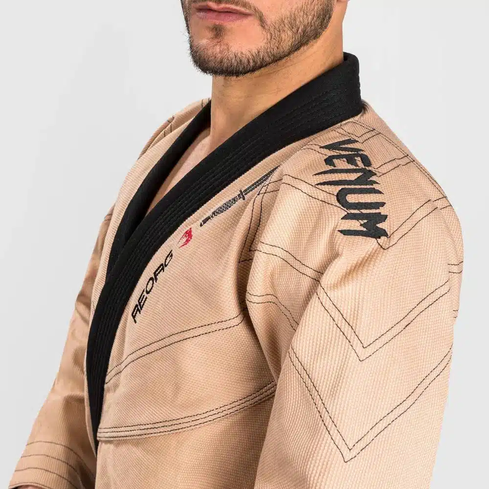 De Venum Reorg BJJ kimono bestaat uit een Pearl Wave 350 gsm katoenen jas en een broek die stevig is versterkt op alle stresspunten, voor een betere duurzaamheid. De verstevigde EVA-kraag helpt je beter weerstand te bieden aan grijpers en tegenaanvallen van je tegenstanders. Ontworpen om scheuren en slijtage door de tijd te weerstaan, is zijn broek gemaakt van 226 g/m² Ripstop-stof en verstevigd op de knieën. De Venum Reorg BJJ-kimono begeleidt je training na training, gevecht na gevecht, zonder aan kwaliteit in te boeten.