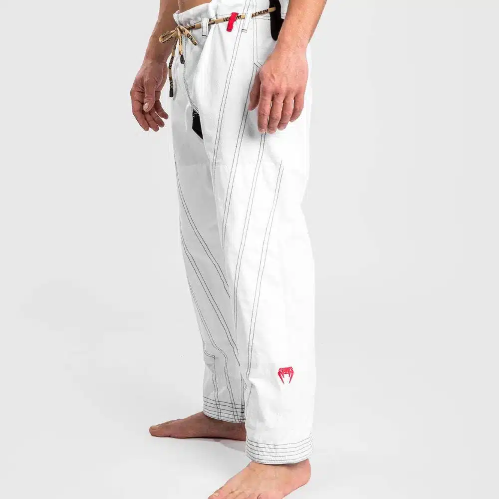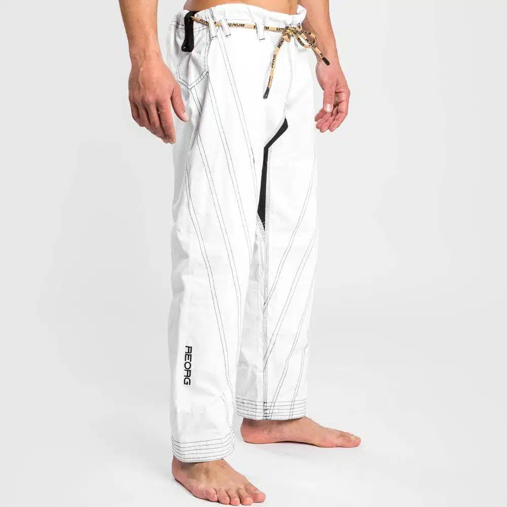 • Venum-logo geborduurd op het linkerbeen Voorgekrompen kimono.