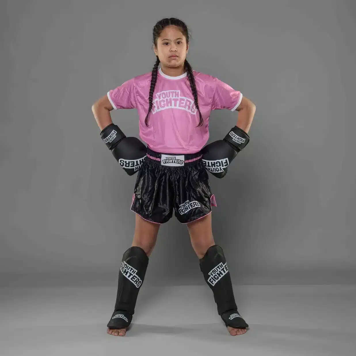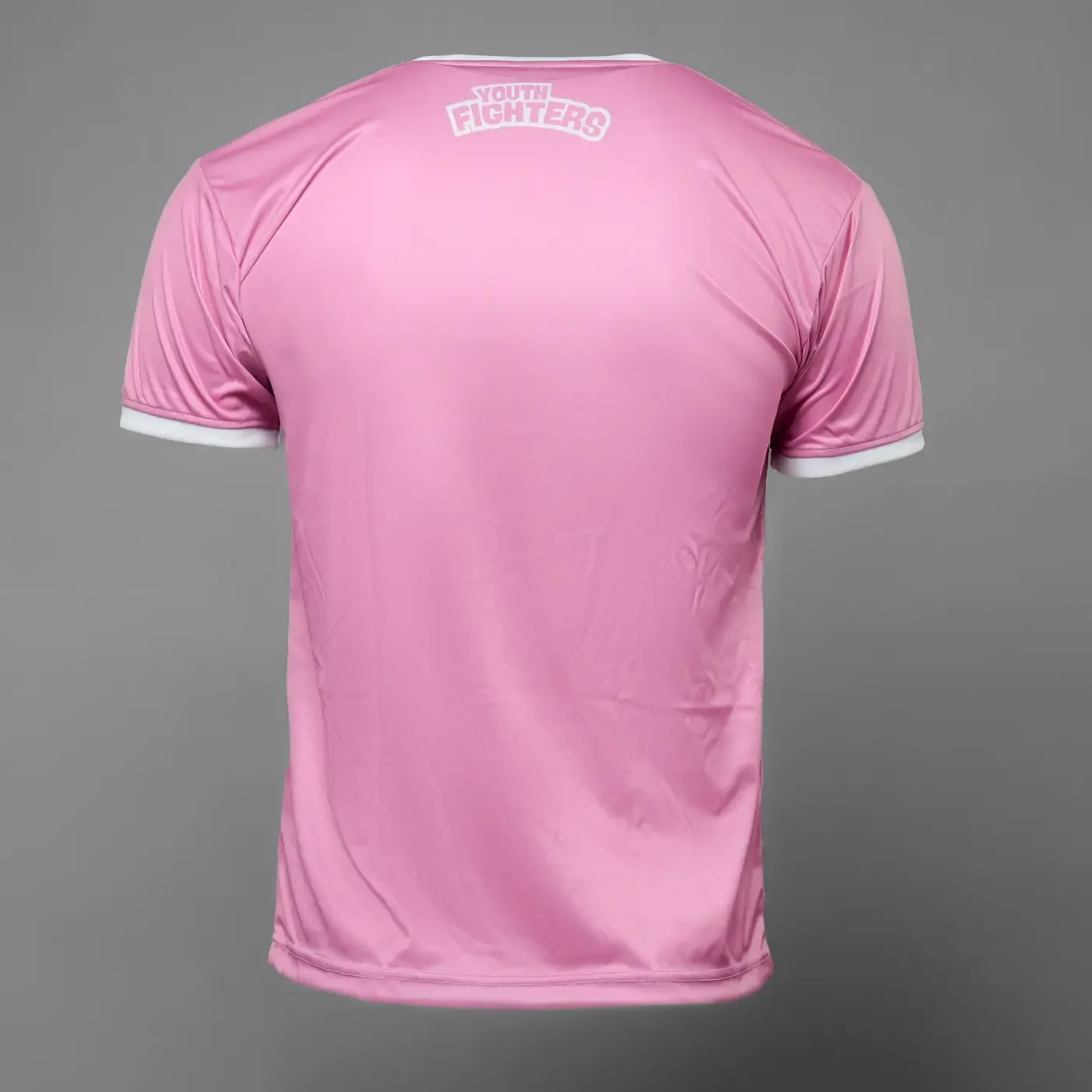 Het Youth Fighters T-shirt Kids Pink is de ideale keuze voor jonge sporters die houden van een frisse kleur en professionele kwaliteit. Dit shirt is speciaal ontworpen voor intensieve trainingen en biedt de bewegingsvrijheid die nodig is tijdens het kickboksen, boksen of andere vechtsporten. Het levendige roze design wordt geaccentueerd door een contrasterende witte ronde hals en witte boorden aan de mouwen, wat zorgt voor een sportieve en stoere look.